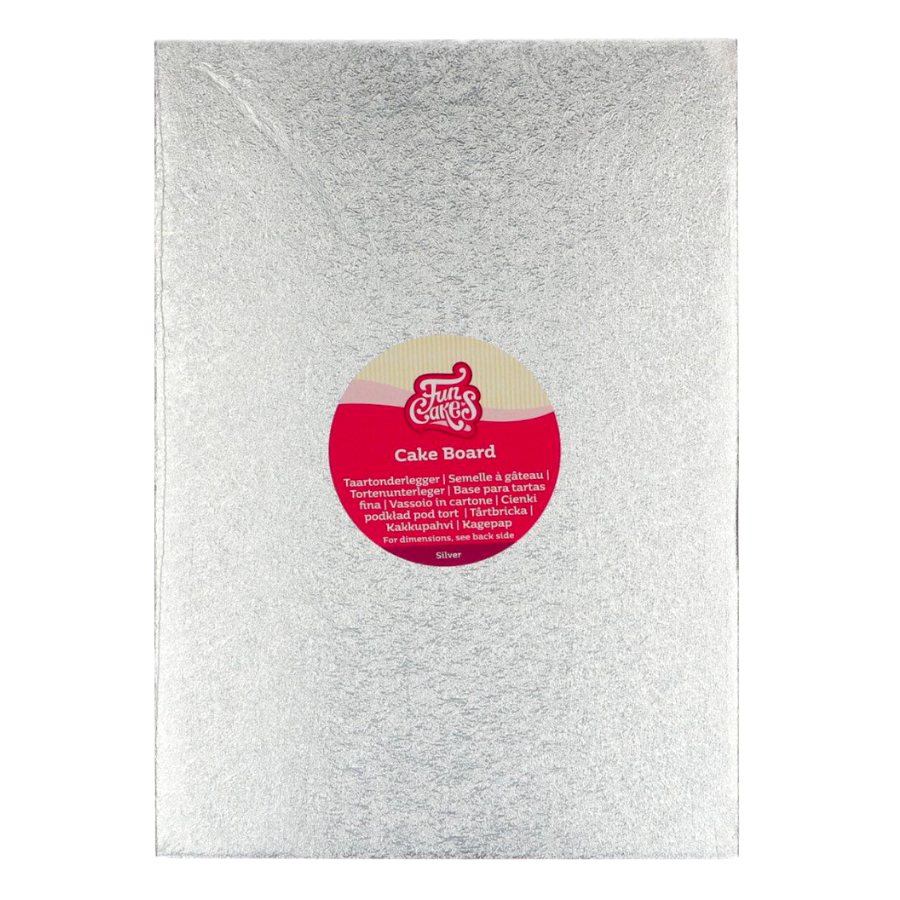BASE RECTANGULAR PLATEADA FUNCAKES – 35 X 25 CM
