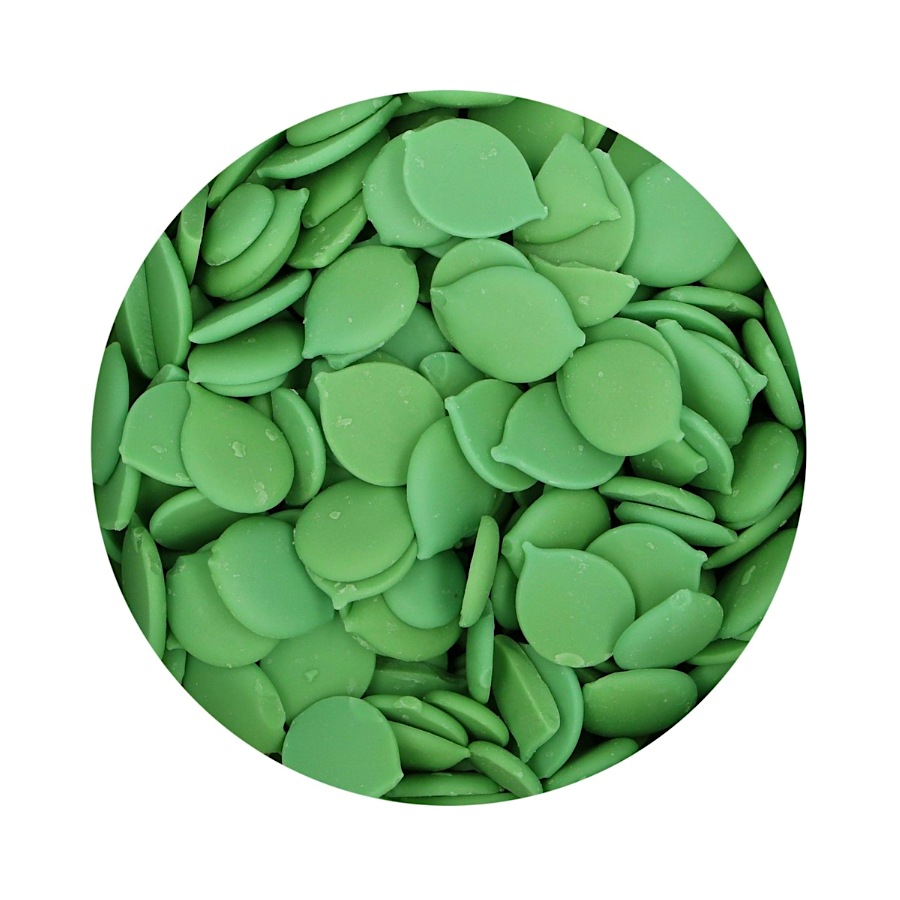 Estos Deco Melts de color "Green" tienen un delicioso sabor a cremoso chocolate blanco. Puedes colorearlos fácilmente con colorantes alimenticios aptos para chocolate.
