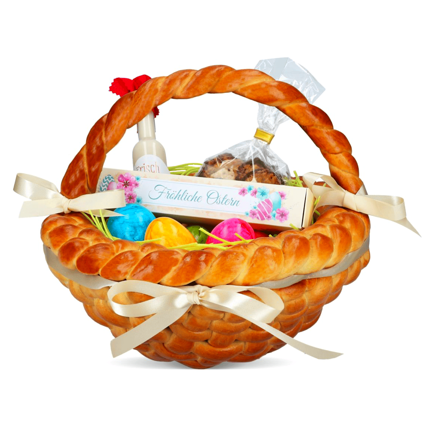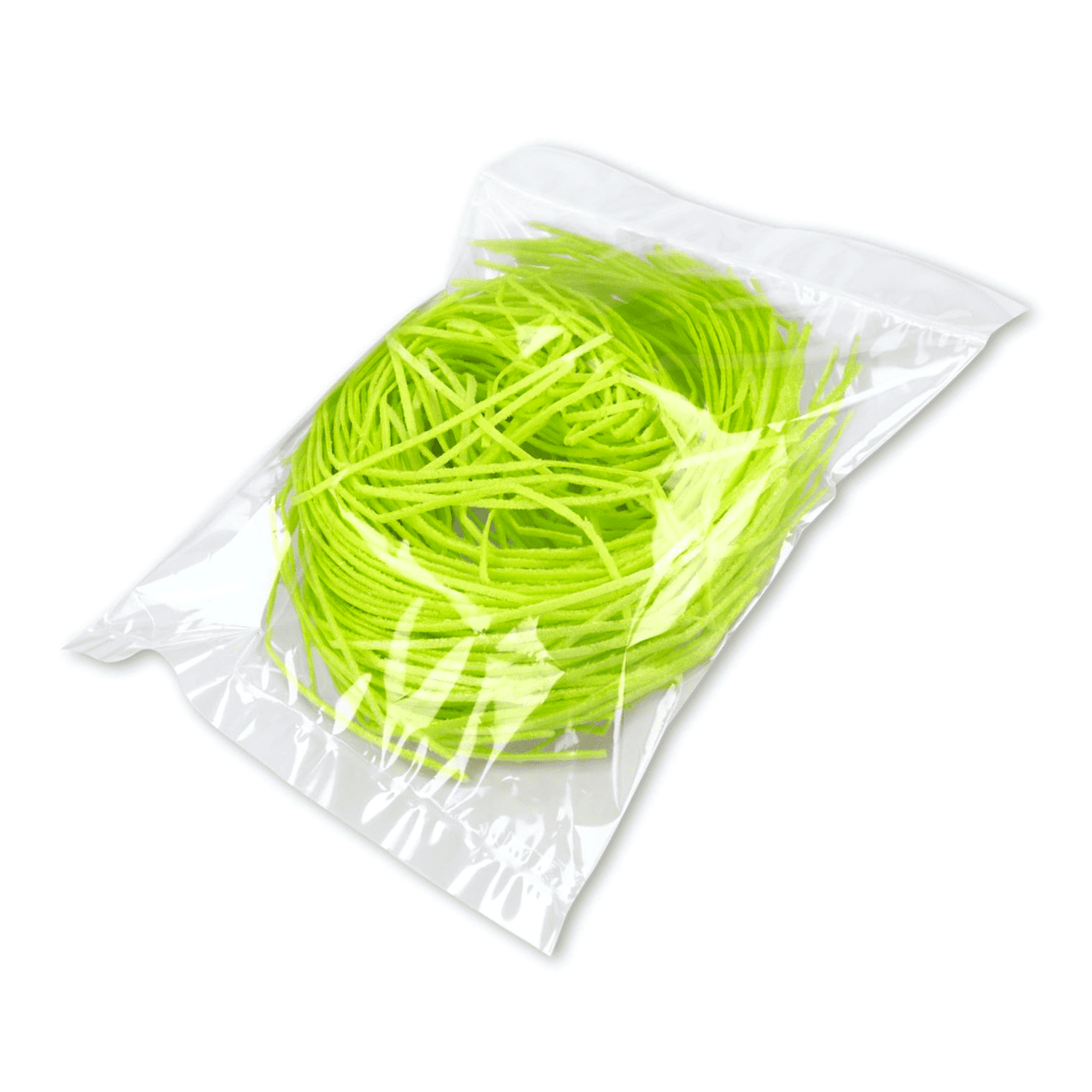 La hierba, de color verde claro, se sirve en largos hilos enrrollados. Si la extendemos, se consigue un volumen idóneo para decorar cestas de Pascua de unos 20 cm.