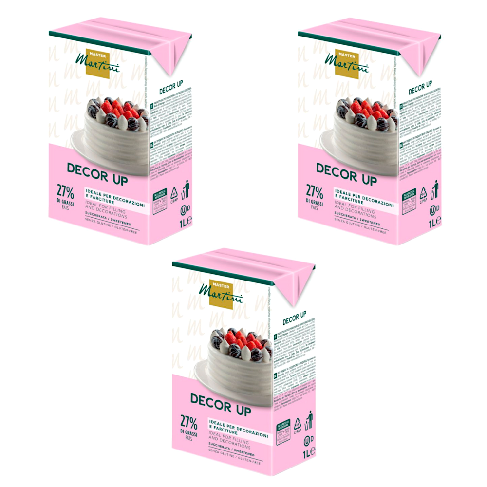 Incluye 3 natas vegetales Decor Up ideales para decoraciones y rellenos, con delicioso sabor y gran estabilidad.