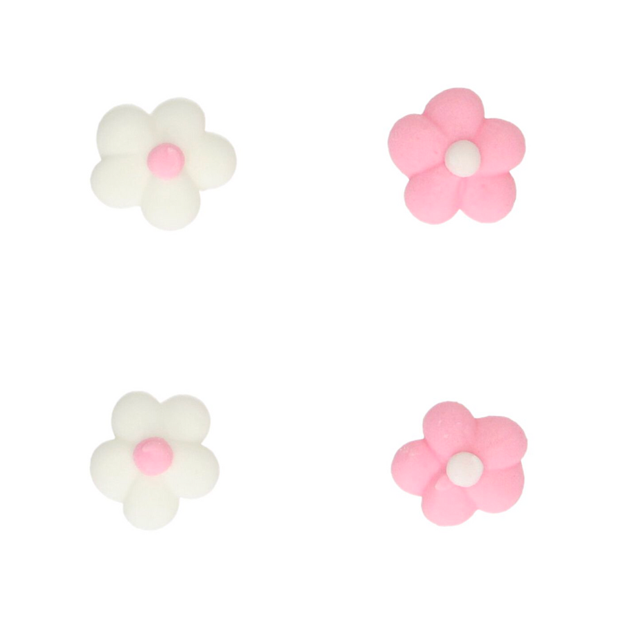 64 decoraciones de azúcar con forma de flores pequeñas Funcakes, en color blanco y rosa.