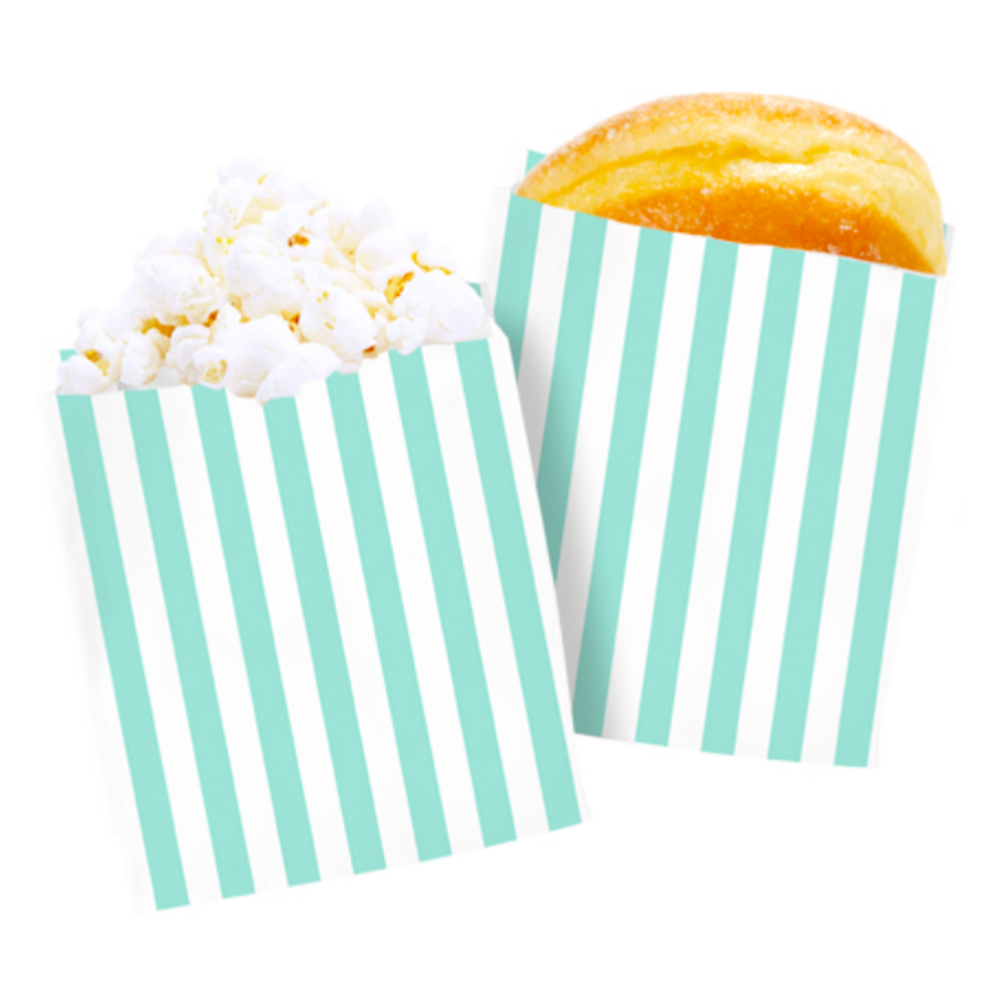Bolsa de papel con diseño a rayas azules y blancas, perfecta para pastas, bollos, snacks salados,…