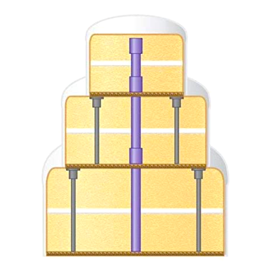 Incluye 3 varas centrales de Wilton, perfectas para crear estructuras con seguridad para nuestras tartas de varios pisos.