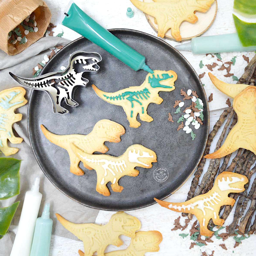 Set de Scrapcooking perfecto para hacer galletas o cualquier otra decoración con original diseño de dinosaurio.