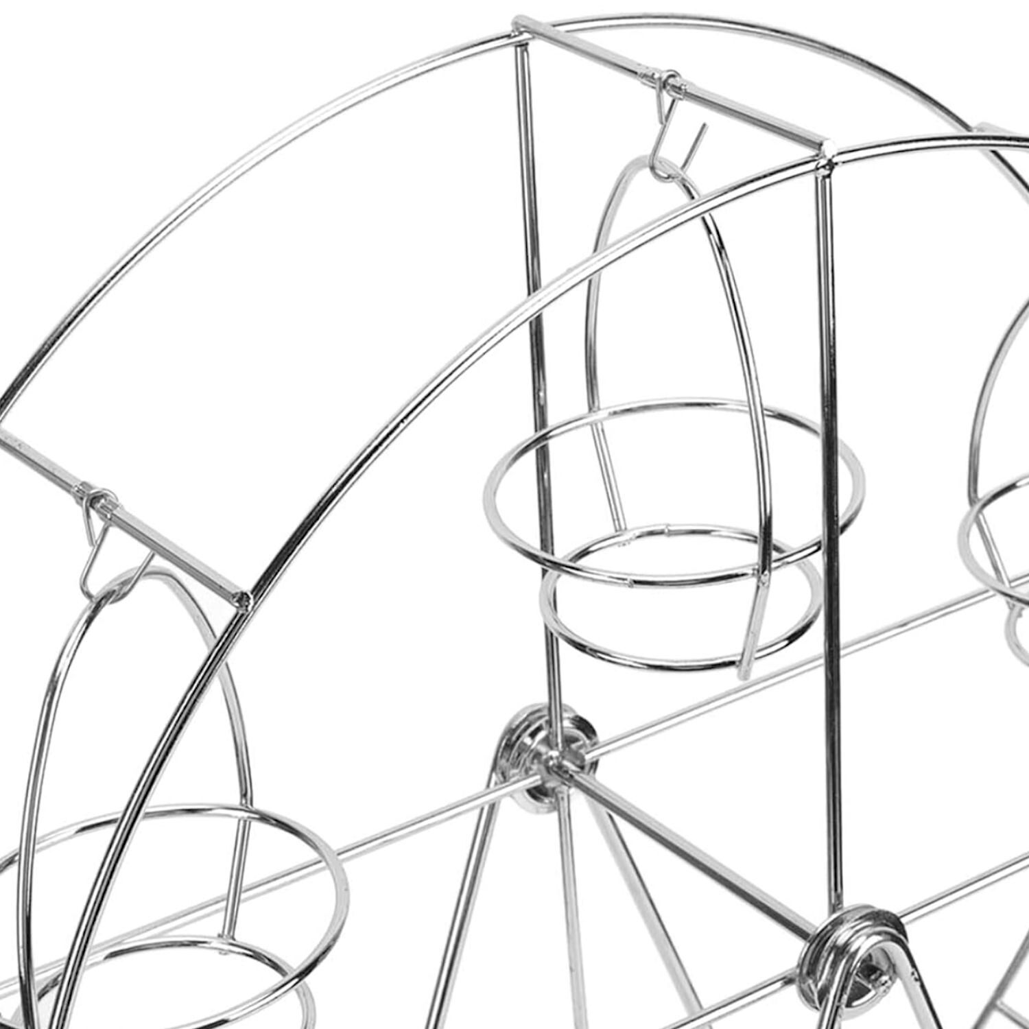 Con un hermoso acabado en color plateado, su diseño en forma de noria no solo atrae las miradas, sino que también permite que cada uno de tus 8 cupcakes se destaque en las cestas giratorias. Dale un plus a tu presentación de cupcakes y convierte tu mesa en el centro de atención. ¡No dejes pasar la oportunidad de deslumbrar a tus invitados con esta pieza única!