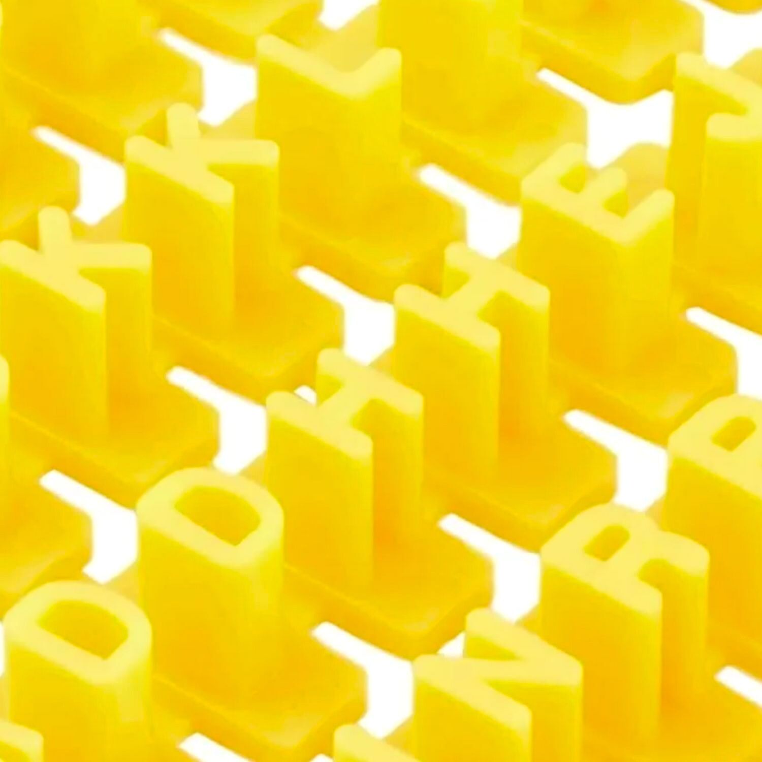 Set elaborado de plástico de calidad alimentaria. Incluye 54 letras del abecedario, 18 números y el soporte para colocar la plantilla.