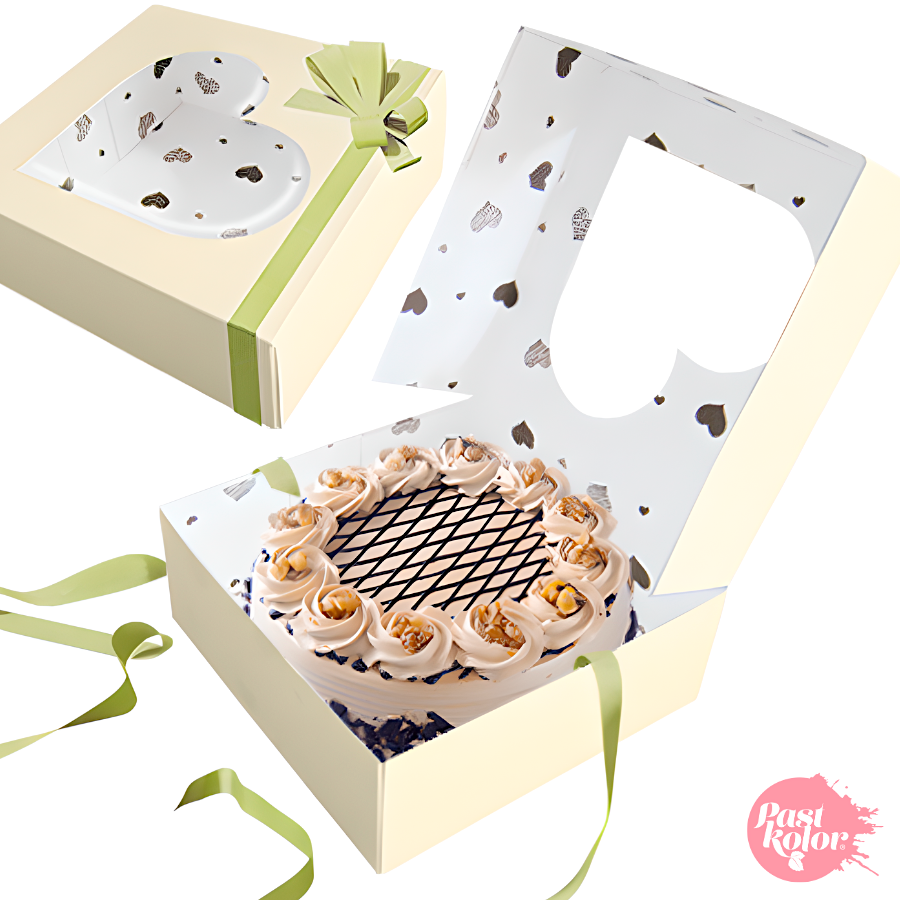 CAJA PARA TARTA CON CORAZONES – COLOR CHAMPAGNE