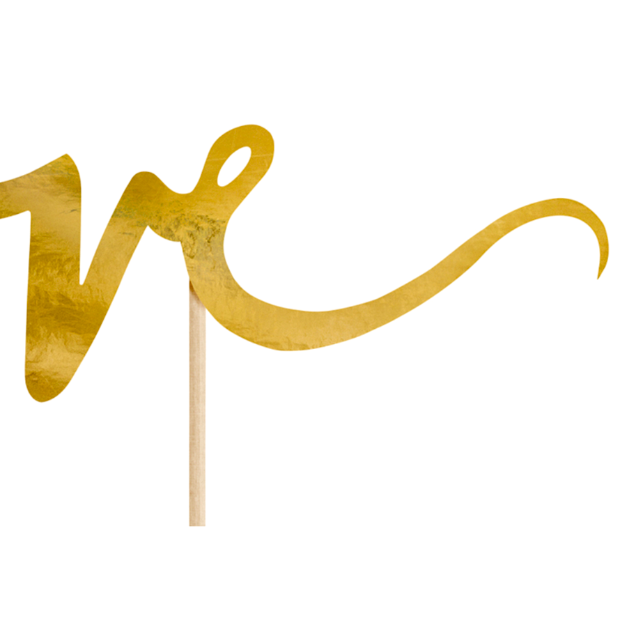 Elegante topper dorado para tarta de PartyDeco, ideal para decorar nuestras mesas dulces.